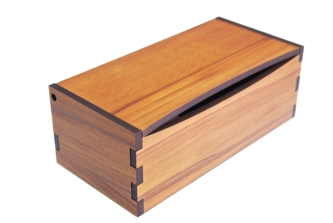 A jewellery box for men made from Rimu veneer with a hinged lid and Kauri veneer Stag design. Comes lined and features a sliding tray customized to hold three pairs of cufflinks. Perfect for storing watches and chains.Size 194 x 95 x 70mm