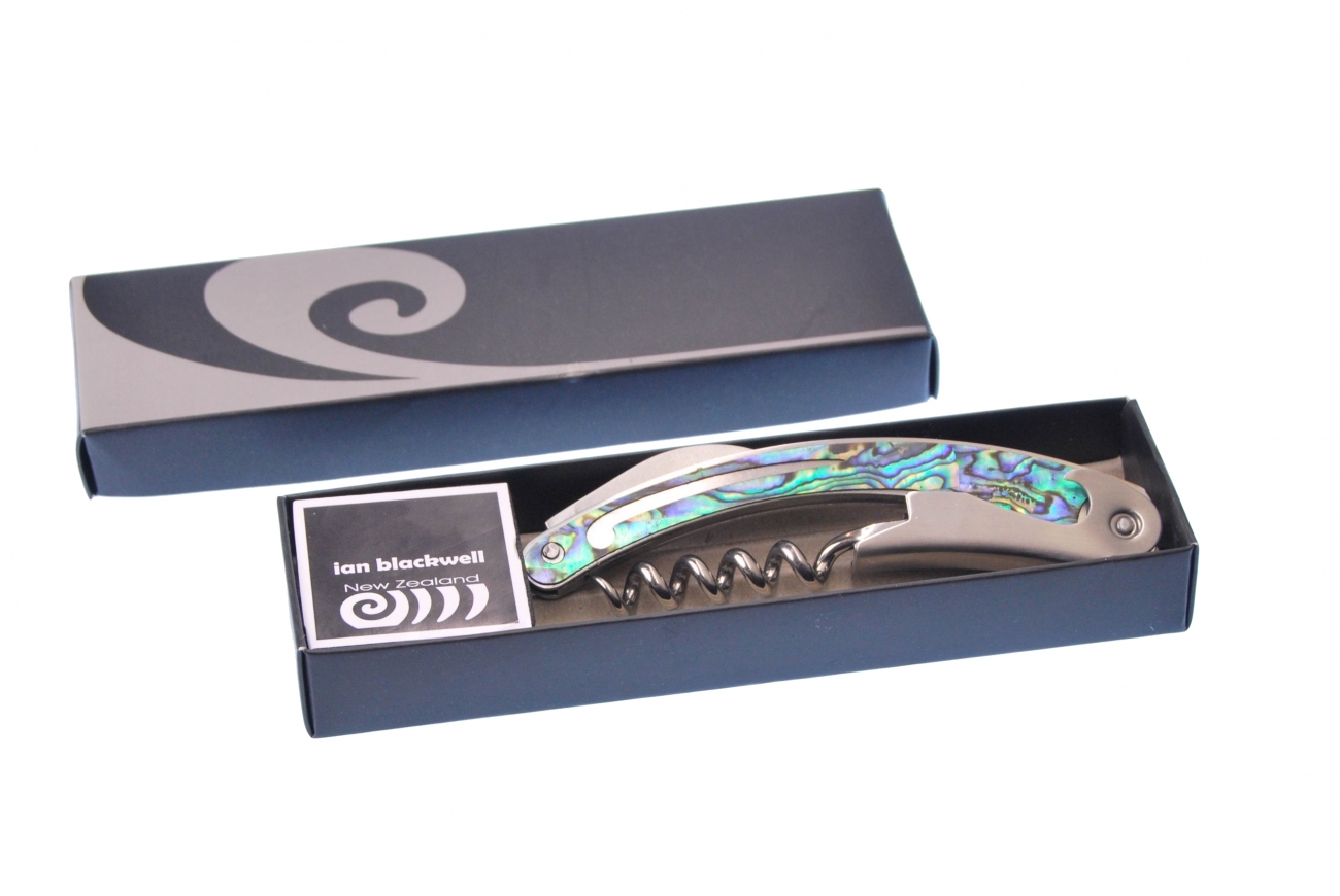 Quality stainless steel waiters knife with a pure Paua overlay.