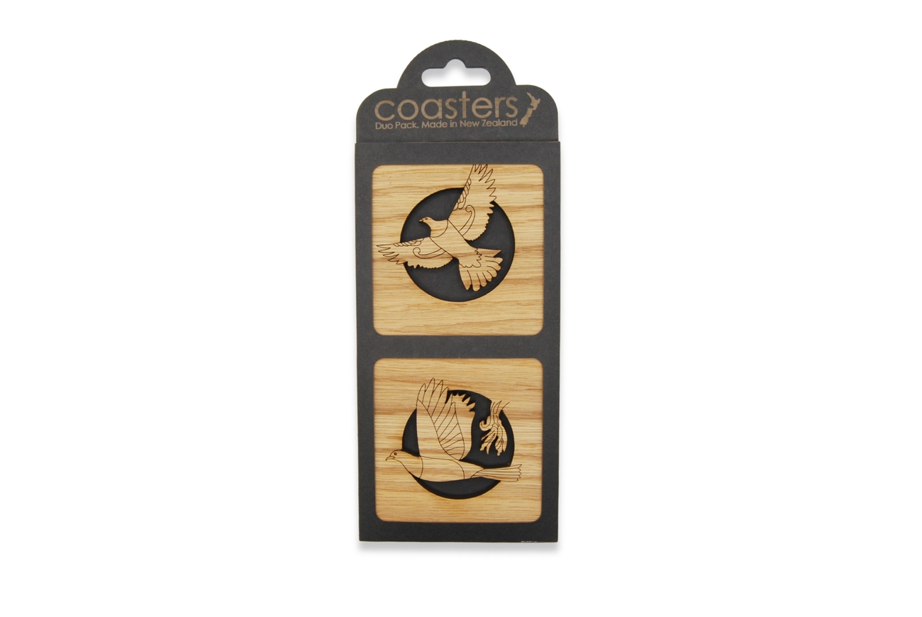 These differing but complimentary pair of coasters feature our New Zealand native Kererū.