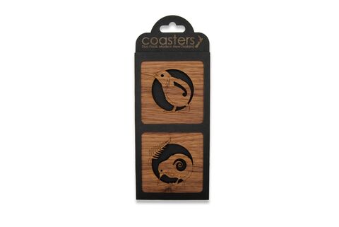 These differing but complimentary pair of coasters feature our iconic Kiwi, native to New Zealand.